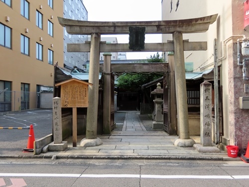 玉津島神社。聞いたことがあります、というか行ってました。和歌山市の和歌浦にある神社で歌道の神「衣通郎姫(そとおしのいらつめ)」を祀った社でした。この新玉津島神社から東へ烏丸通りを渡ったところに「俊成社」がありますが、後白河院から「千載和歌集」を撰集せよと命じられた藤原俊成がこの場所に歌道の神を勧請したというわけです。