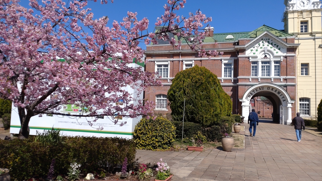 最近はアニメ「わたしの幸せな結婚」とのコラボでグッズ販売やアニメのパネル展示や等身大パネルも飾られたり、ピザフェスタもが行われたそうです。イベントないシャトーは静かで、園内に1本だけある河津桜が満開でしたが、本格的なお花見とライトアップは3月23日以降です。