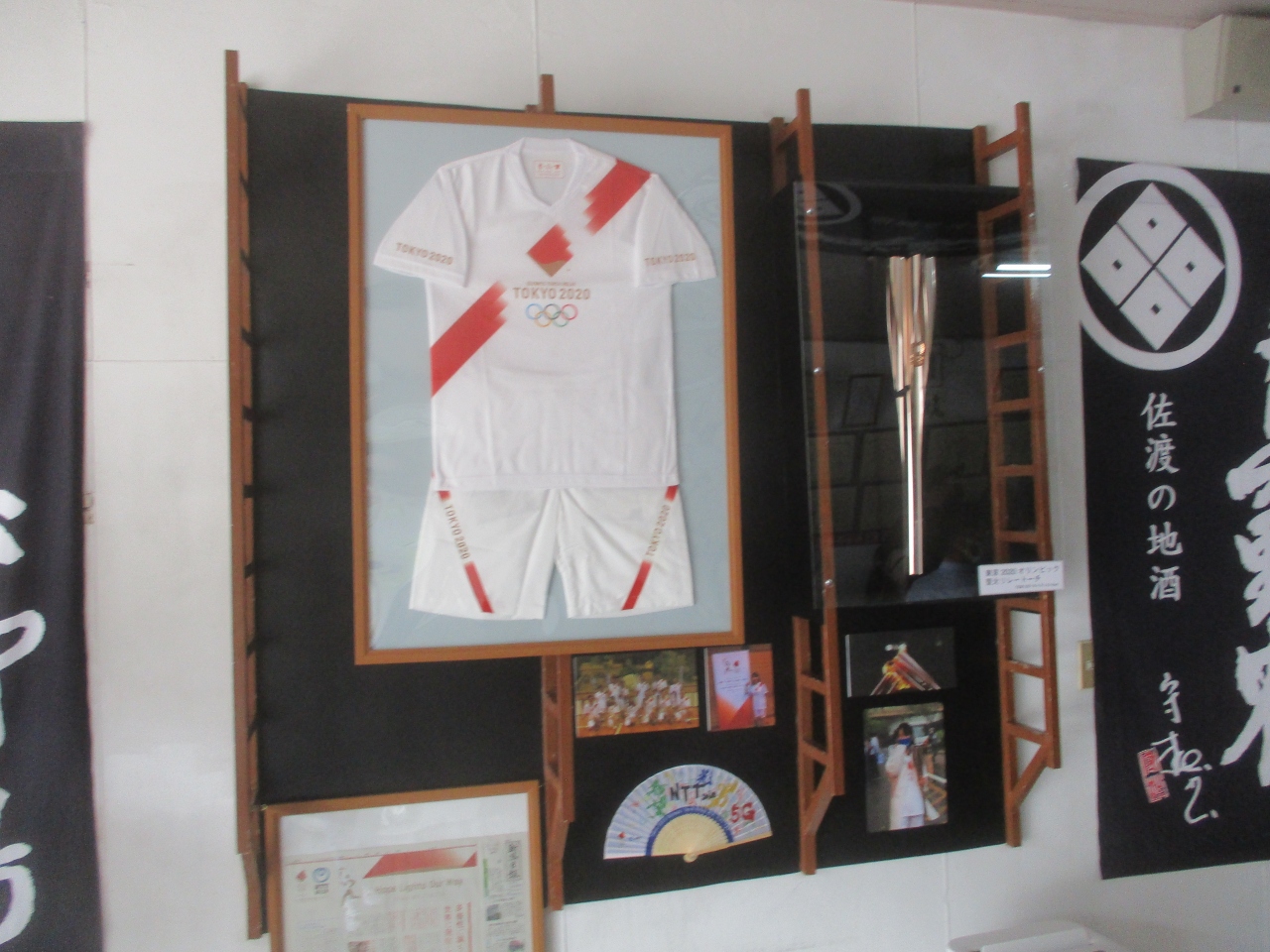 東京2020オリンピック聖火リレーが6/4、6/5と行われました。尾畑酒造の社長さんも聖火ランナーとして参加されたようで、実際に着用されたユニフォーム、トーチと当時の写真が飾られていました。佐渡のなかでもかなり有名な企業であることを知りました。