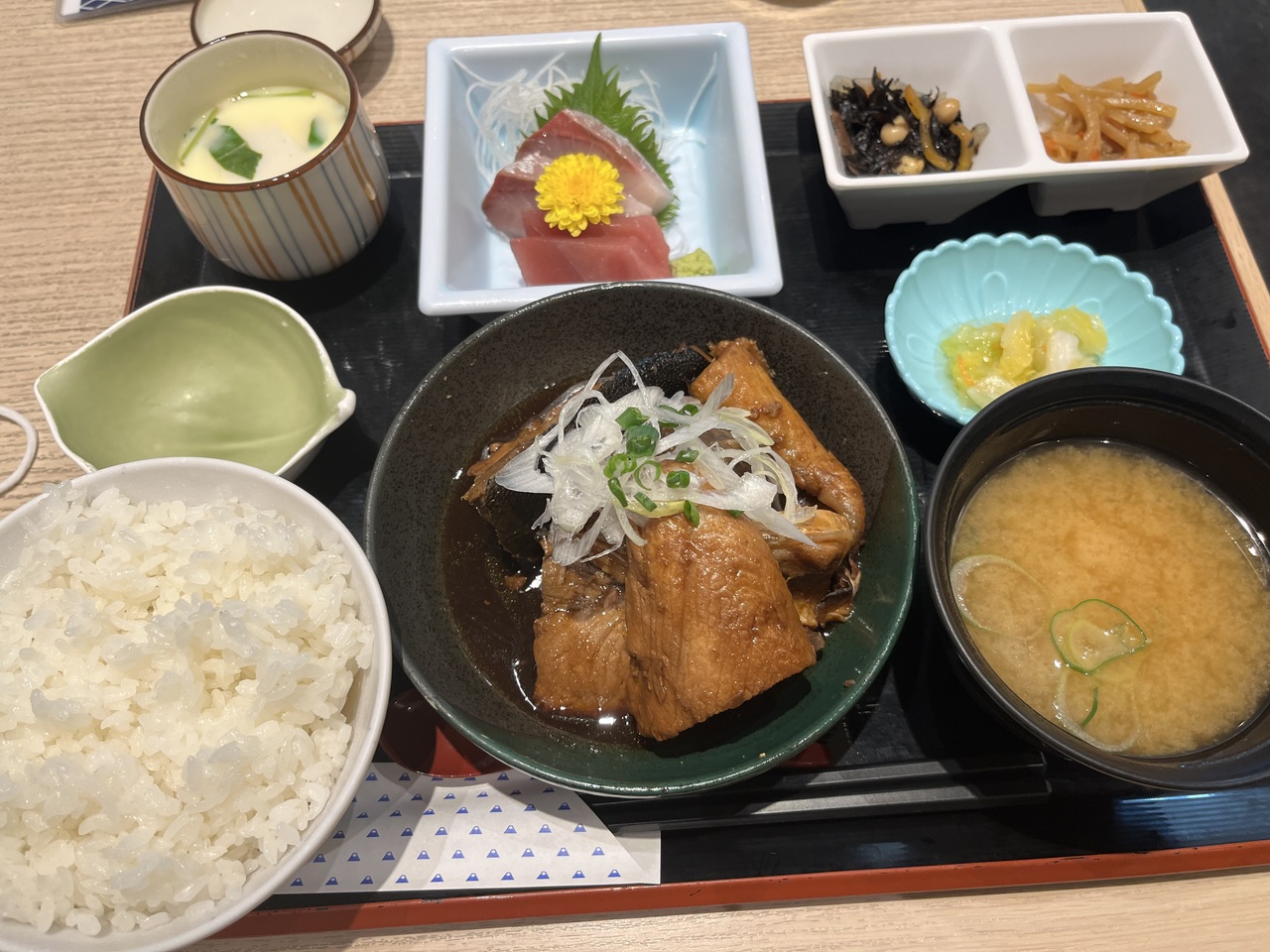 大混雑の熱海駅 お手洗いもいっぱい それを逃れるために駅直結のビルの3階へここも満員 その3階にフードコートがありました 少し並びましたがすぐ案内されました この頃は青い魚に惹かれる ブリのアラ煮定食1599円に決まり 身がたっぷり付いてトロトロで美味しかった~ご飯の量が多くて食べきれないと思ったけどぺろっといけました 接客も最高でした 単品でアジフライもテイクアウトしました