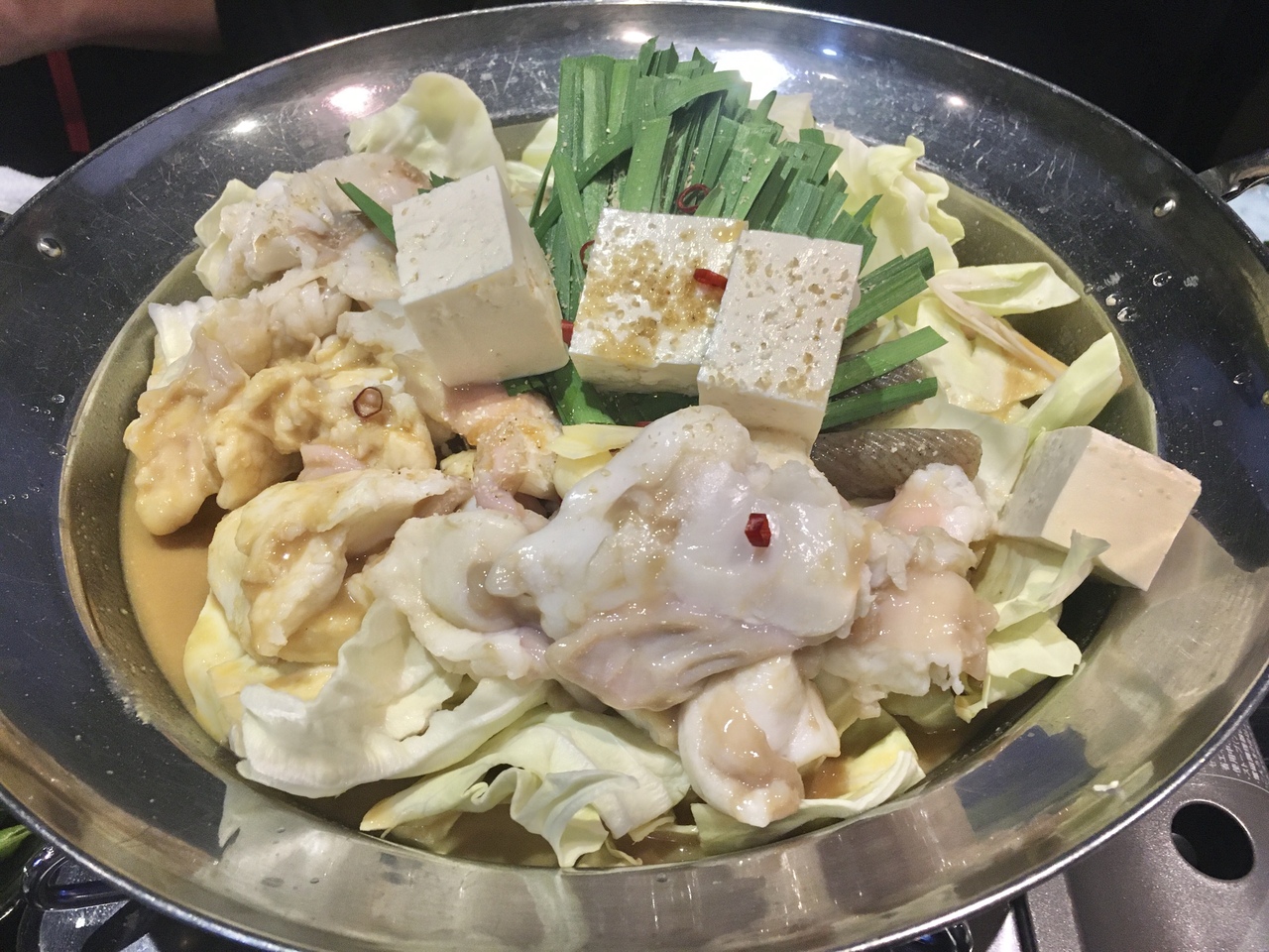 もつ鍋のスープが数種類あり、あっさりした醤油ベースから、味噌味は少し濃厚な味になっていました。