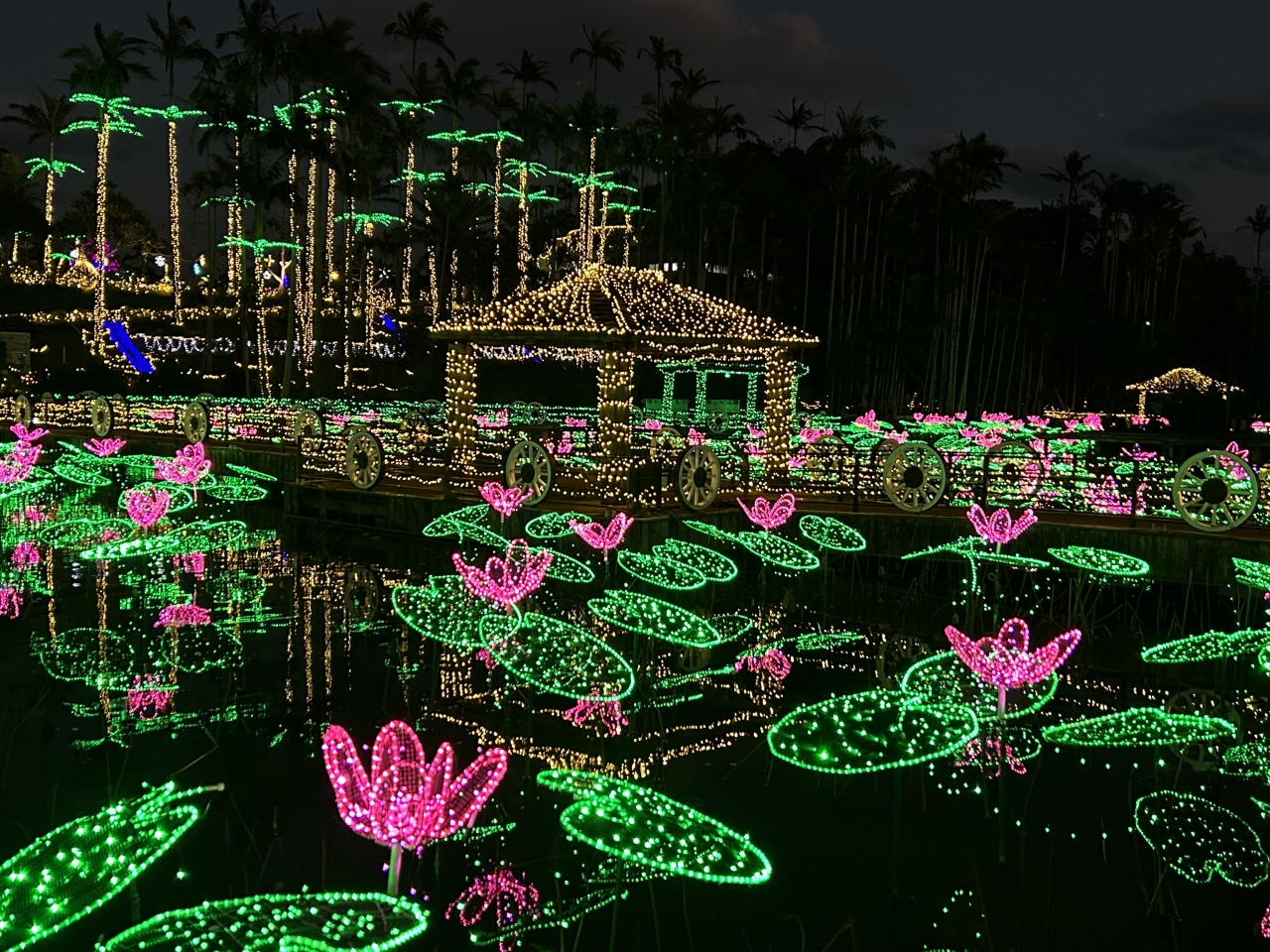 南国らしいカラーリング中心で、本土じゃ見れないタイプのイルミネーションでした。