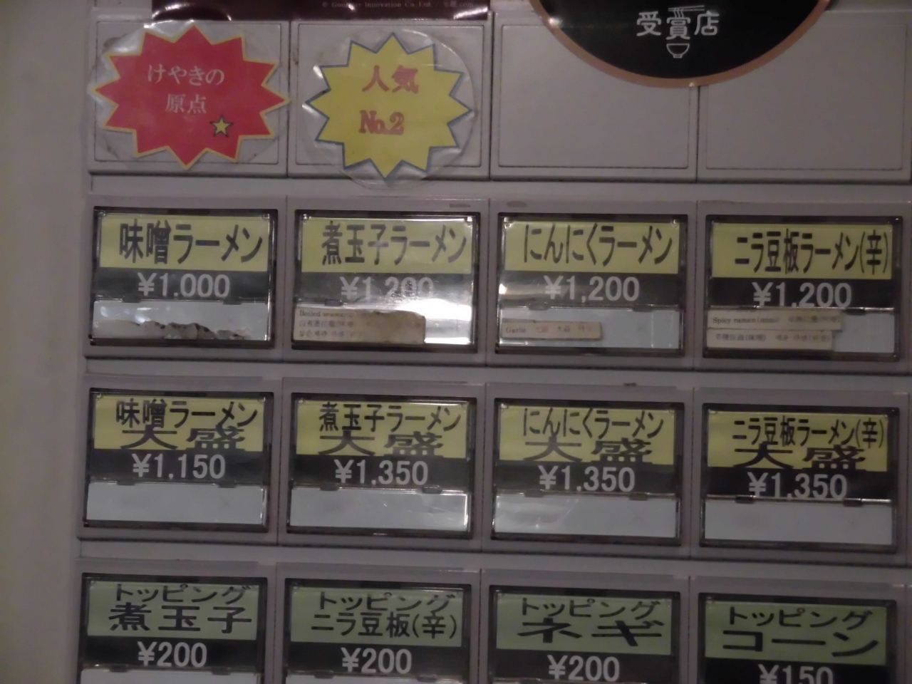 カウンターだけの小さな店です。入口の券売機で食券を購入します。