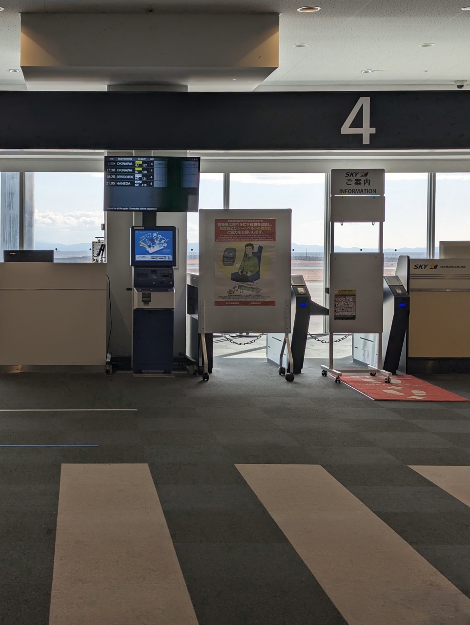 規模が小さいだけに歩き疲れることもないのが田舎者の私には一番ありがたいことかも知れない。兎に角〝行き〟に関しては、毎回でも利用したい空港だと私には思えるのであった。
