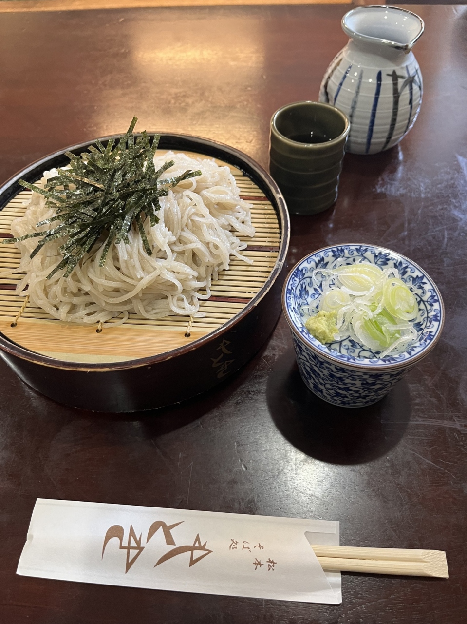 開智学校へ行く途中、そばのお店を尋ねたところ、ここを教えてもらった。TVの取材が来てから行列になっていたとの事。行ってみると、そばの実を3割まで研ぎ落とした吟醸そばのお店だった。