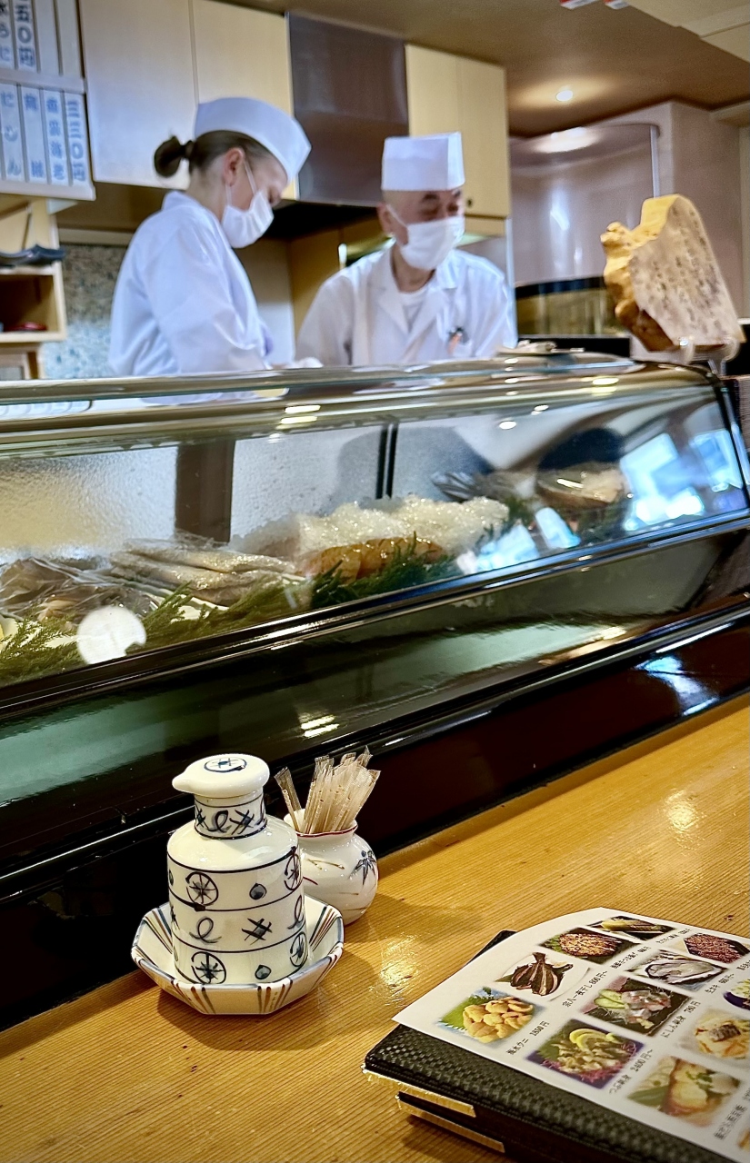 このお店、カウンター内で料理に準じているのは、大将二人に、な…なんと、日本語を喋るロシア人の女性。