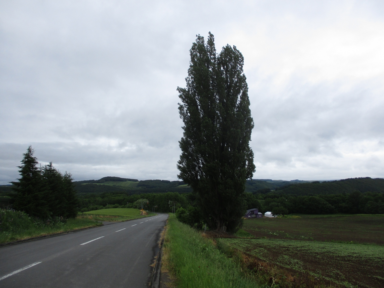 6月の都心は梅雨のまっただなかでしたが、6月中旬の美瑛は晴れていて天気が良かったです。気温が25度以下、湿度はからっとしていていい季節でした。木に葉が茂っていて、パッチワークの路と呼ばれるこのあたりのいい風景を見るには最高のコンディションだったと思います。