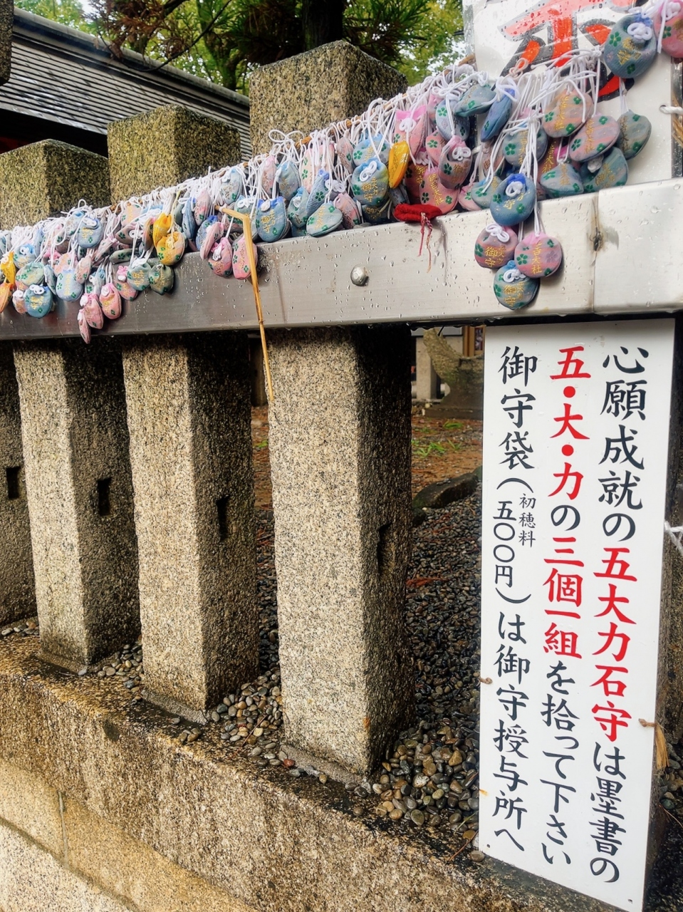 でもココを見てると、みんな石を入れた御守袋を、おみくじみたいにこの場所にぶら下げて帰る感じなのかな…?と思ったら、願い事が叶ったら、「石を倍にして五所御前にお返しください」となっていたので、ここにぶら下がってる御守袋は、それだけ願い事が叶ったという事なのでしょう。