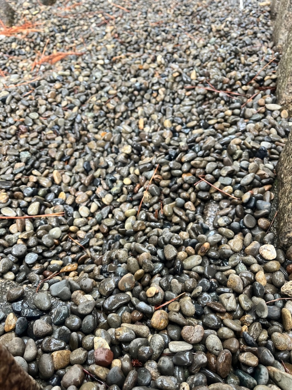 五所御前の、心願成就の五大力石守。 ここに撒かれた小石の中から、五・大・力と墨で書かれた石を見つけて、拾って御守袋に入れて持っているとご利益があるとか。
