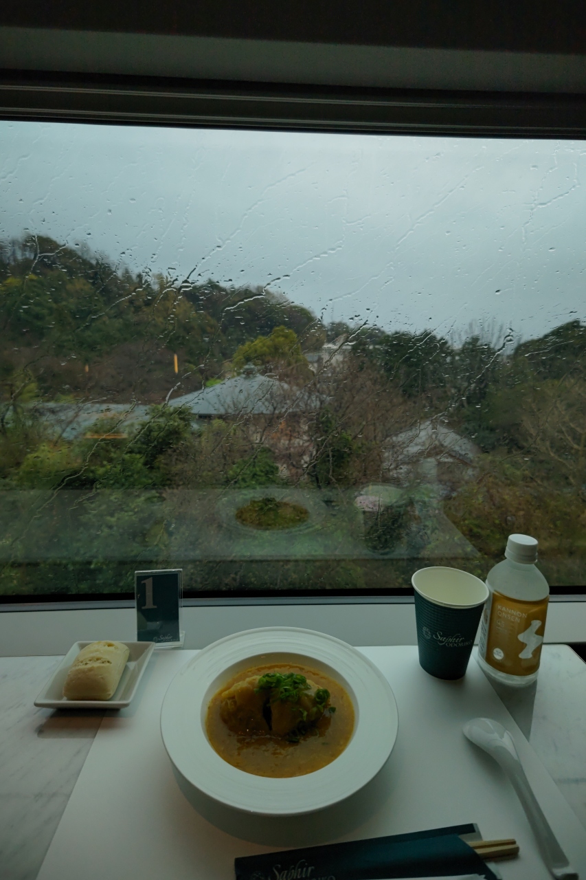 食事は事前に「サフィールpay」で予約しておくとビュッフェで本格的な食事を楽しめます。今回はロールキャベツを堪能しましたが、本格的なレストランの味で最高。ここのところ味気ない列車が増えてしまっている、日本の列車に乗っていることを忘れてしまいます。