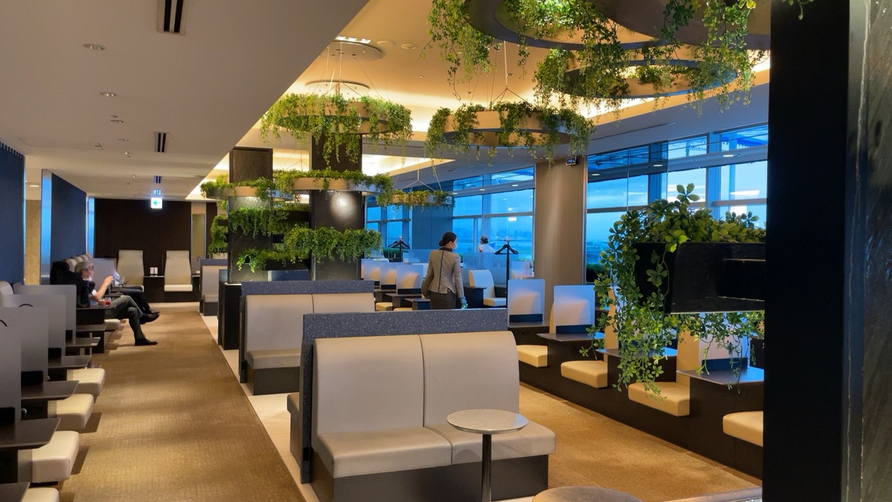 ANAラウンジの1つ上の階にある。ハードルが高いので、ANAラウンジよりはすいている。水と緑の調和がテーマのTHE PARK側がおすすめ。