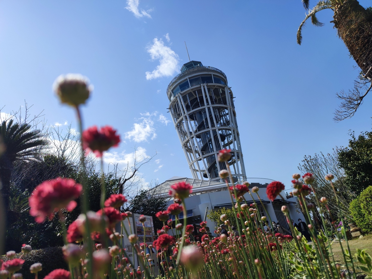 江ノ島にわたって、江島神社まで登って、その先にある庭園です。江ノ島の夜景は有名ですが、その下にあります。