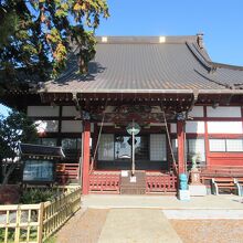 1326年に創建された日蓮宗寺院妙音寺です。表通りに併設の幼稚園があり、その奥に駐車場があります。木造瓦屋根の本堂のガラス扉から堂内を見ることができます。本堂と寺務所をつなぐ赤い太鼓橋のような渡り廊下が印象的です。