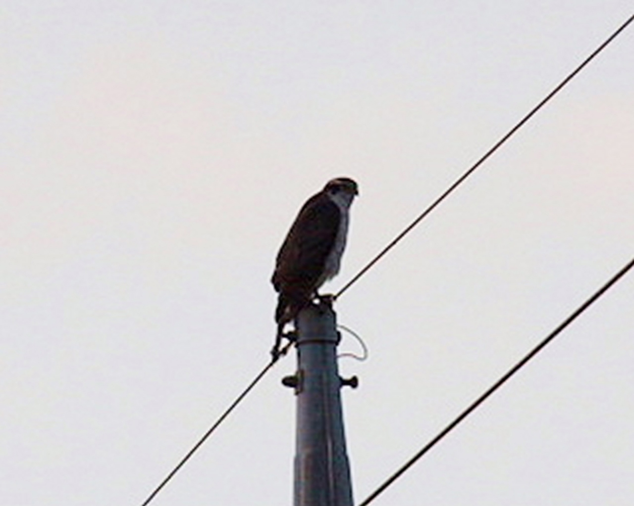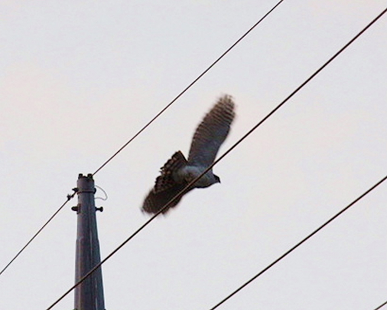 印西市の旧本埜村の白鳥の郷でバードウォッチングを楽しんだ後に帰宅しようとした時、近くの電柱に止まっているオオタカが見られました。
