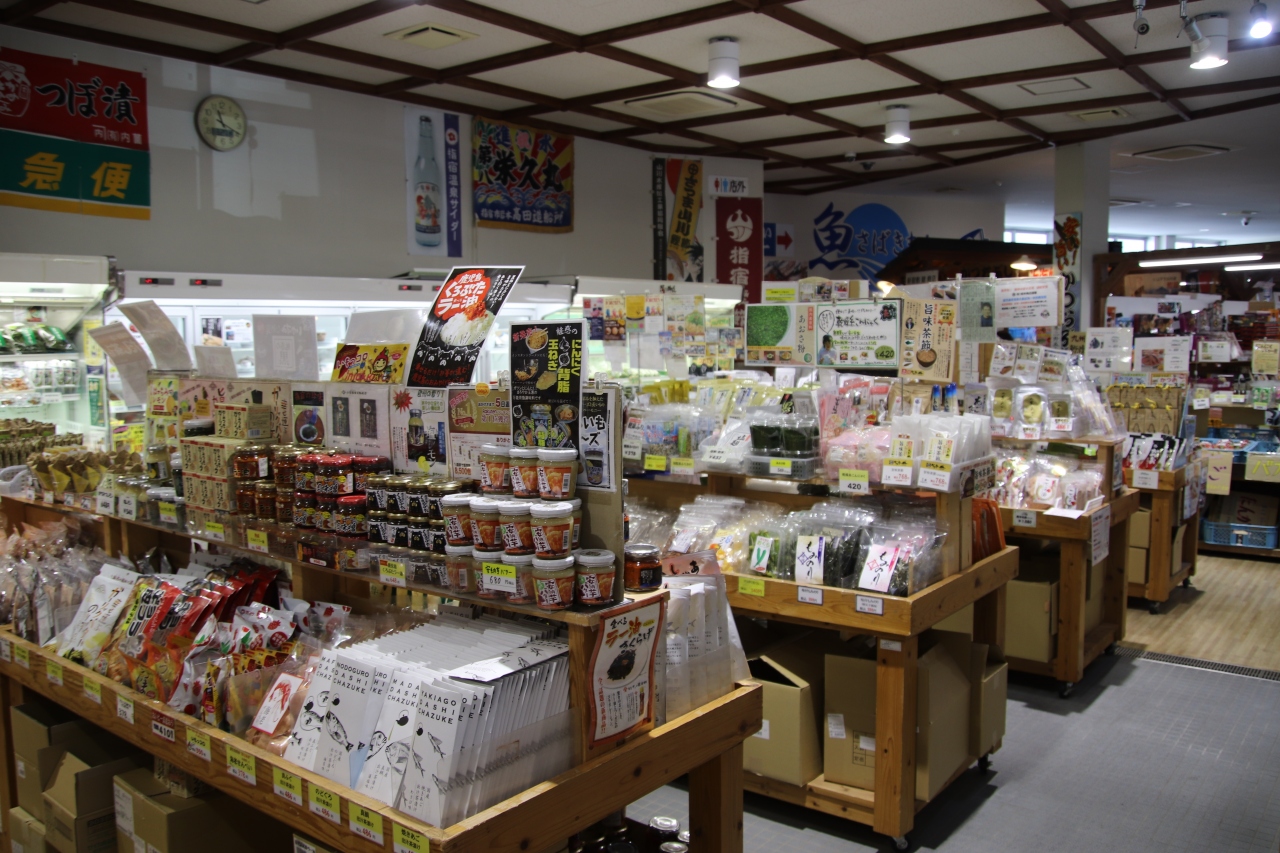 フェリーが発着する山川港近くの品揃え豊富道の駅です。さつま揚げ、かつお節などの個人商店も入居しています。訳ありさつまいもチップ、訳ありおかき、訳ありジャガスティックなどリーゾナブルな価格の商品もあります。