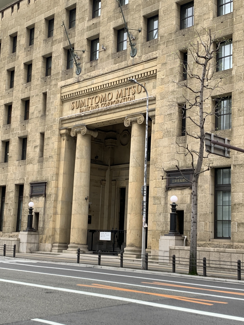 土佐堀川のほとりを歩いていると、大きな重厚な建物が見えます。