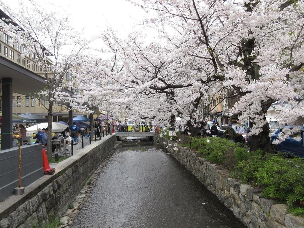 春は川の両脇に「桜」が咲き誇り、夜になると「ライトアップ」も行われることから、阪急電車・京阪電車で大阪・神戸方面に帰る前の観光客が多く訪れ、追い込みの写真撮影で賑わいます。