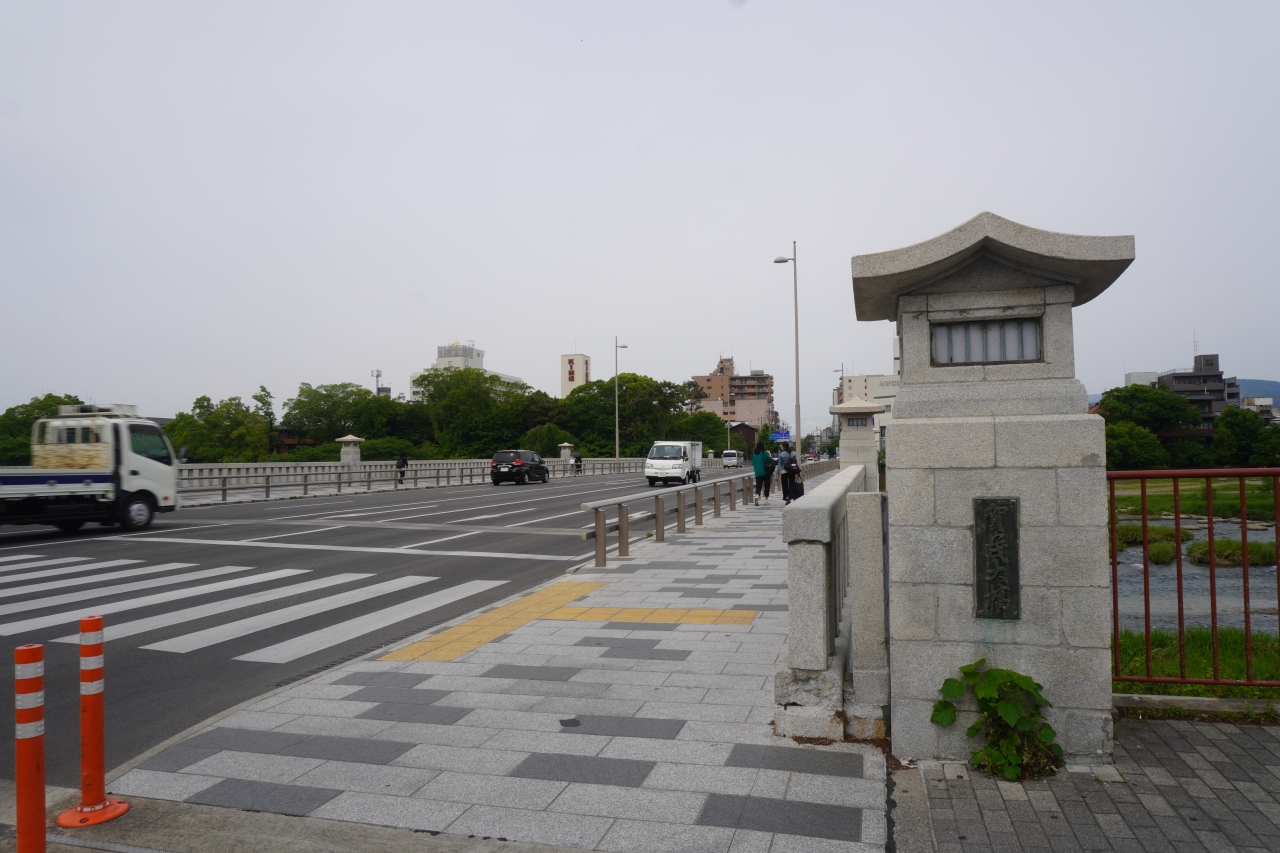 賀茂大橋は、鴨川に架かる橋。今出川通りを通します。この橋のすぐ上流で賀茂川と高野川が合流して鴨川となるという場所。設計は福山市出身で東京帝国大学建築学科を首席で卒業した武田五一。欄干には14基の石灯籠があって、夜になると灯が灯ります。