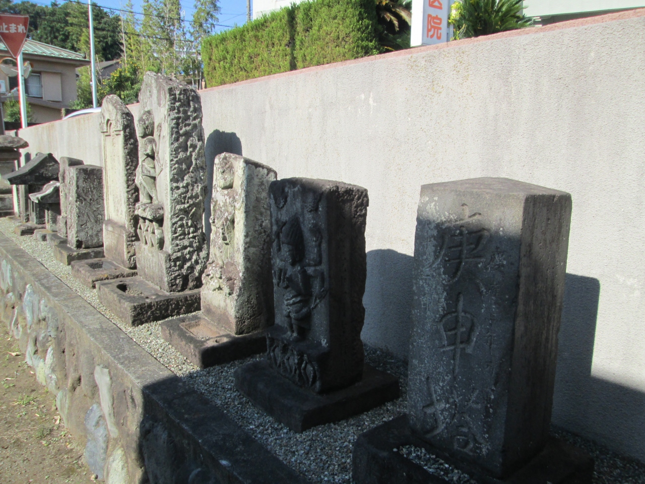 創建は不詳、ご祭神は宇迦御神魂大神と須佐之男命です。鳥居を潜ると拝殿、庚申塔等の石造物、境内社があります。藤沢本町にある白幡神社の兼務社です。こじんまりした神社で、特筆するスポットはありませんでした。しかし境内には、三猿の上に乗る青面金剛像の庚申供養塔や祠、その他石造物が多くあるのに、興味を持ちました。余り風化はしていないので、造立年はあまり古くないように見えます
