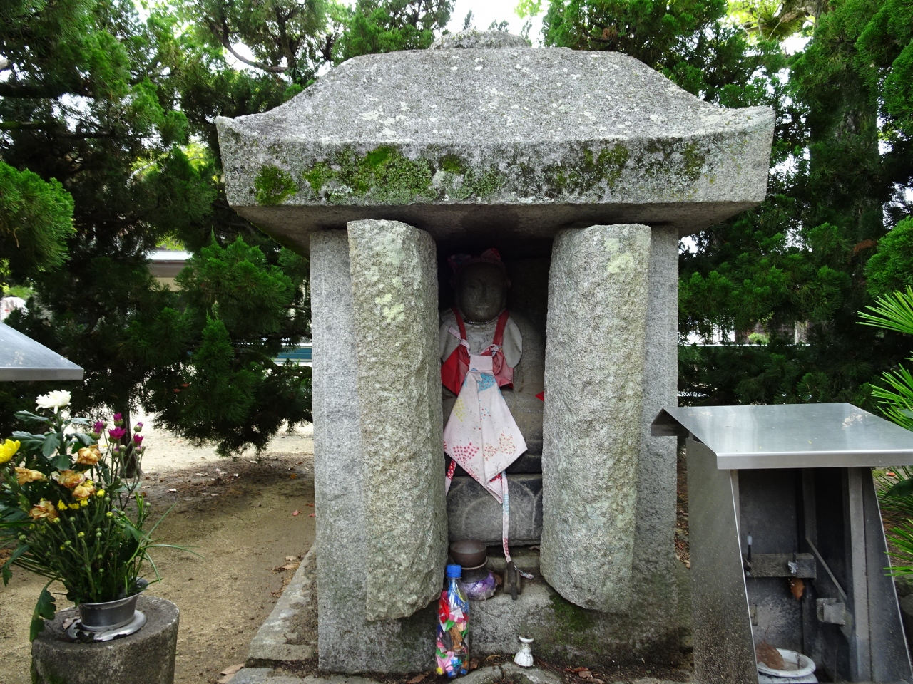 本堂左手にある薬師如来を祀る小さな祠が「地獄の釜」と呼ばれています。心がけの悪い人が地獄の釜に頭を入れると抜けなくなるとの言い伝えを聞いた意地悪なおタネばあさんが入れると、ゴーッとという音が聞こえ抜けなくなった。過去の悪事を謝ると抜けたそうです。この釜は弘法大師が戒めのために作られたとされています。