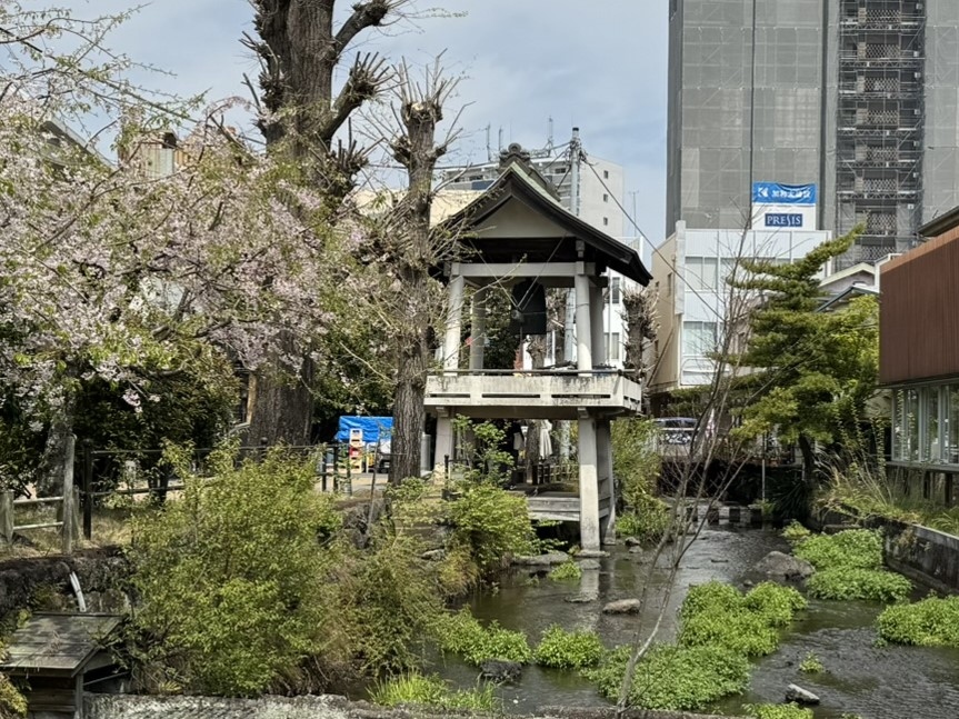 三島で一番のうなぎの老舗・桜家のすぐ横に、櫓の中に納まった大きな釣鐘があります。江戸時代に三島宿の人々に時を知らせていたものですが、名称の表記や説明書きなどは一切なく、櫓と釣鐘だけがポツンとあります。この場所は、桜家の順番待ちをする人が、常にあふれています。