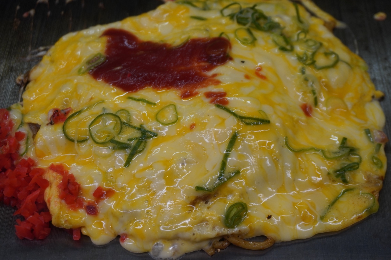 いただいたのは、とろとろチーズおむそば。基本のソース焼きそばがしっかりしているところに、とろとろチーズ。おいしくないわけはないんですが、もんじゃだとチーズ明太子餅とかあって、それと比べるとどうなんでしょうね。もんじゃは出汁のベースがあってうまみというだけならそっちが上なんでしょうが、対して大阪の味はさりげなさかな。目の前で調理するパーフォーマンスを見ながら待ちましたが、その雰囲気にもけっこう飲まれてしまったような。料理の味だけでなく、とにかく勢いのあるお店です。