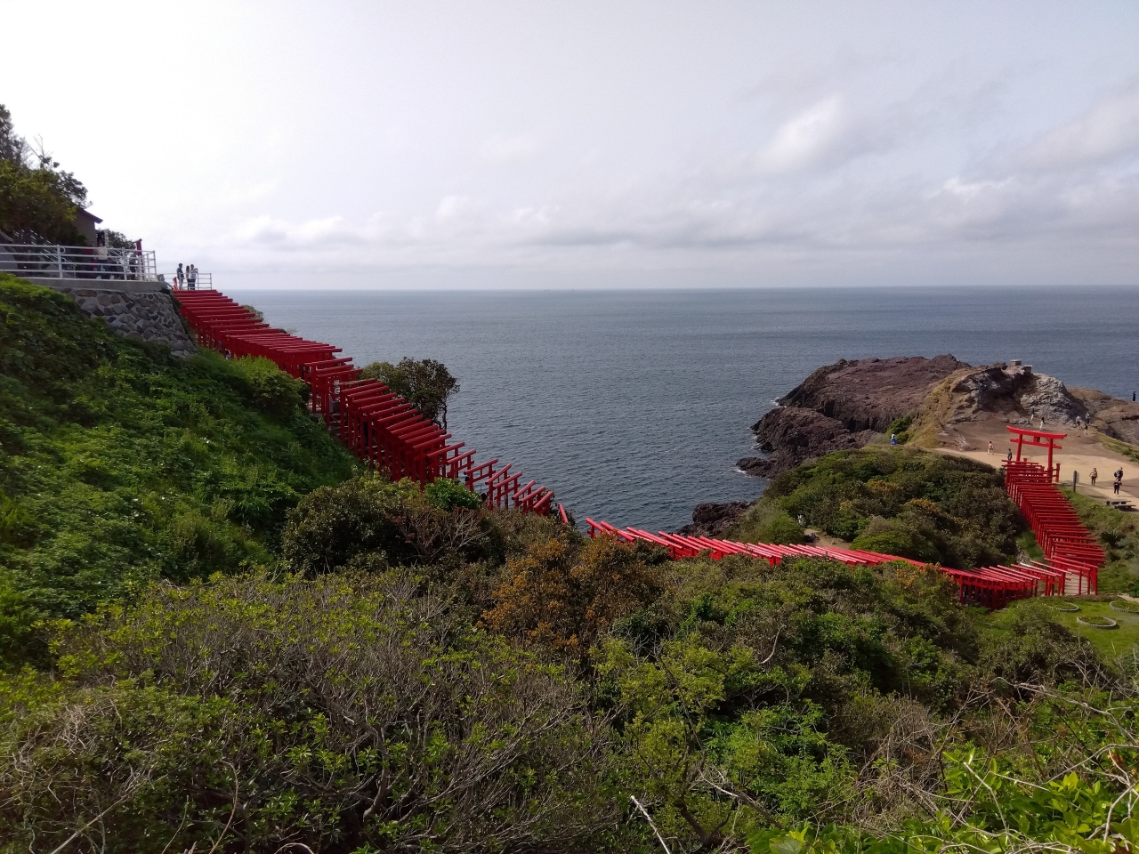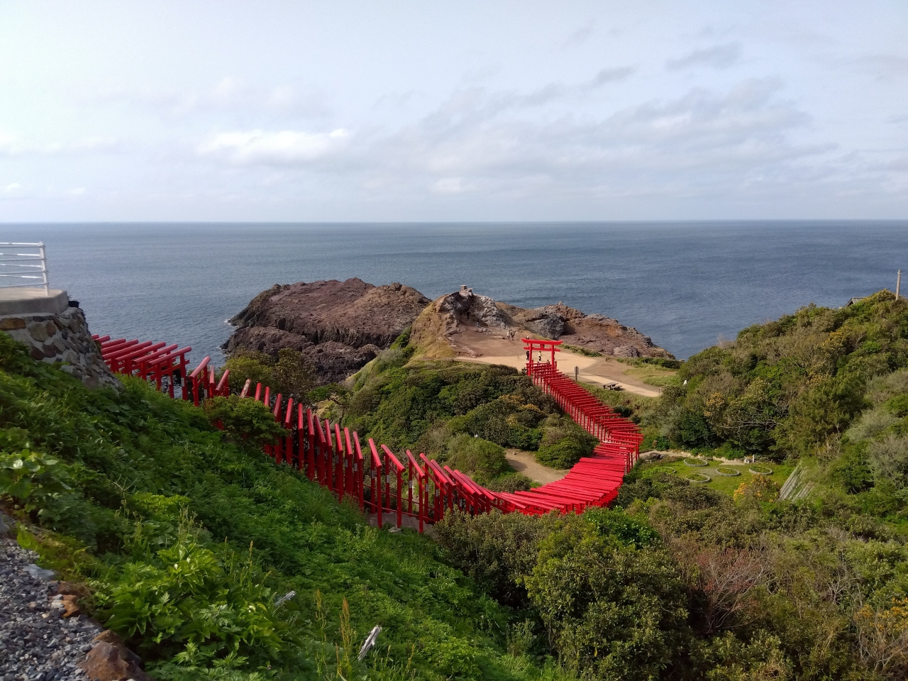 123基の赤い鳥居と青い海が美しい日本海の断崖絶壁に建つ神社です。