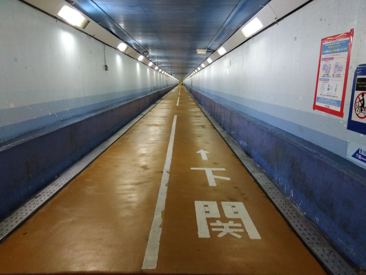関門海峡(約780メートル)を歩いて渡ることができます。