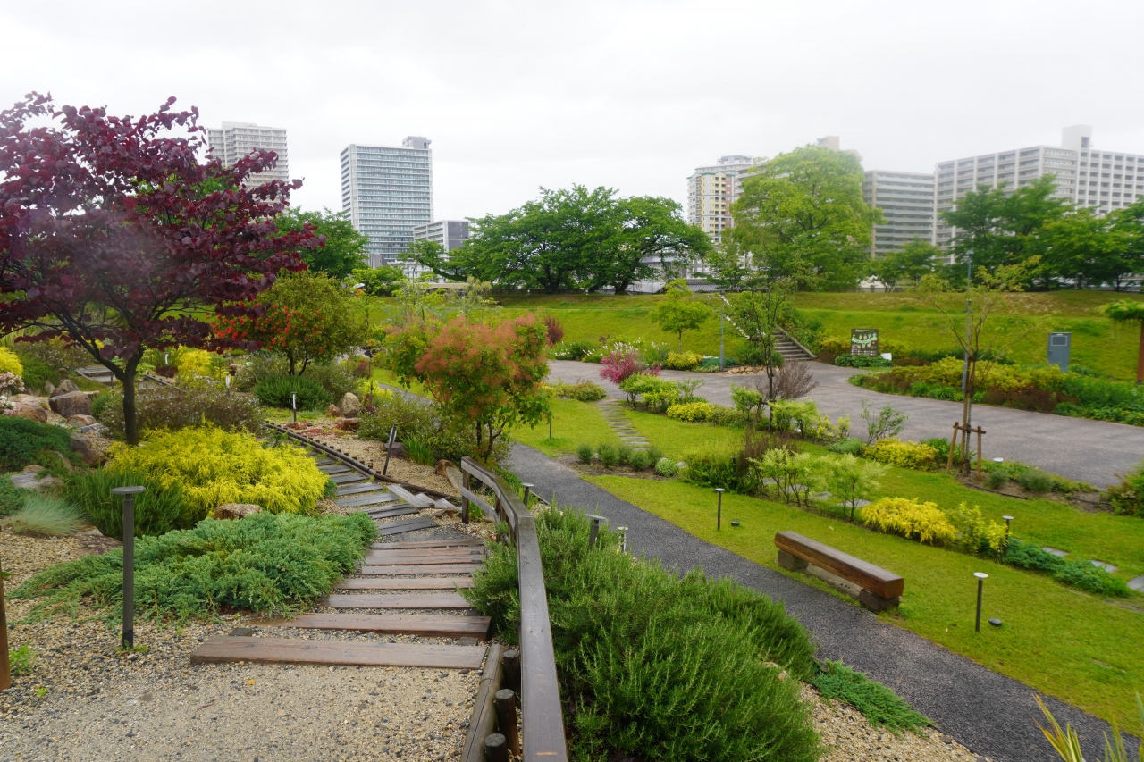 草津川跡地公園de愛ひろばは、かつて草津川が流れていた場所を緑豊かな公園として整備したもの。形からして、川は流れていないものの天井川そのままの姿が残っていて、歩いていてもちょっと妙な気分ですけどね。ただ、その立体的な形状を活かしているので、草花が箱庭みたいに展開してこれはこれで面白い。かつての川はどこに行ってしまったのか分かりませんが、なかなかの憩いの場所となっています。