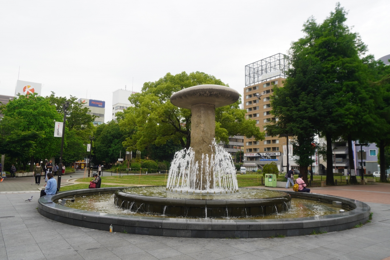 中央公園は、阪神尼崎駅前。公園というか広場のようなスペースですね。中央に噴水の池があってその端に腰かけて休んでいる人がいたりしますが、基本は駅を利用する人の通り道的な役割かな。一角にあまがさき観光案内所の大きな建物があって、それもけっこう目立っています。