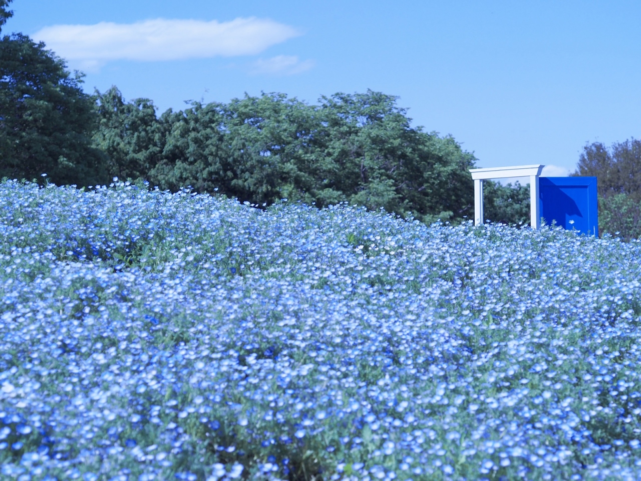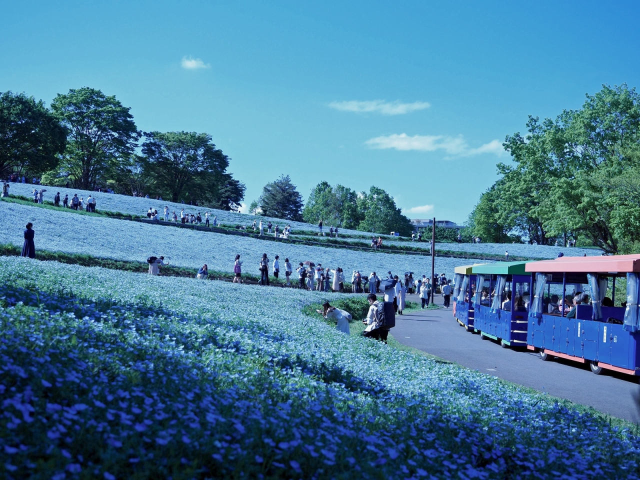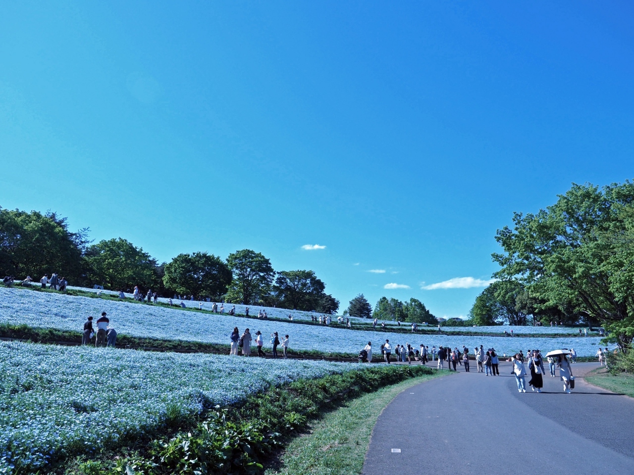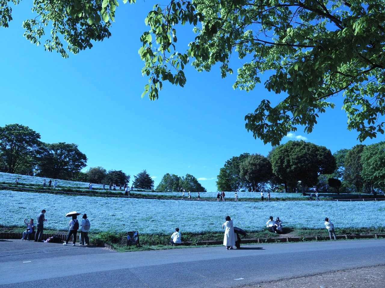 昭和記念公園開園40周年を記念して約180万本のネモフィラが花の丘に場所を移し植えられました。4月の27日、28日の2日間にはしゃぼん玉の演出が行われます。