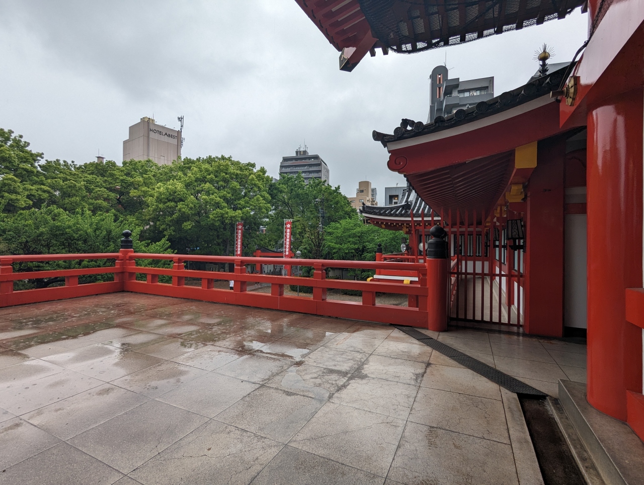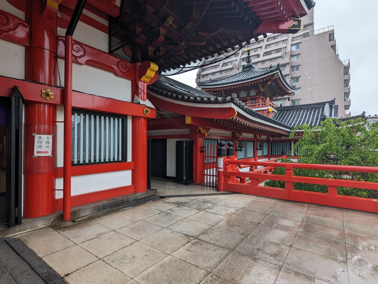 The temple is located in Osu, one of Nagoya's most popular shopping districts. The temple is located on the west side of the Osu district and at the edge of the shopping arcade, so the bustle of the shopping arcade does not echo so much in the temple precincts. Even so, many visitors to the shopping district stop by the temple as worshippers. The mundane atmosphere of the mundane and the solemn vermilion of the buildings on the temple precincts blend together, but there is no sense of dissonance; in fact, the temple has been deeply loved by the common people for a long time.