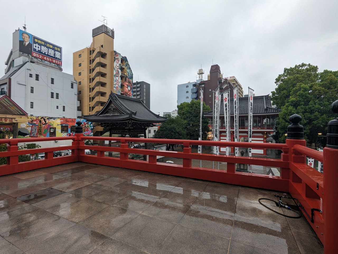 名古屋の代表的な繁華街である大須にある寺院。大須の地区の西側にあるのと同時に、商店街の端に位置するため、商店街の喧騒は寺の境内にはそれ程響いてこない。それでも商店街を訪れた客の多くが参拝客としてこの寺に立ち寄っている。俗世の雑多な雰囲気と境内の建物の朱色の荘厳さが混ざり合った雰囲気を漂わせるが、不協和音な空気感は全く無く、むしろ永き渡り庶民に深く愛され続けてきた寺であることが伺える。