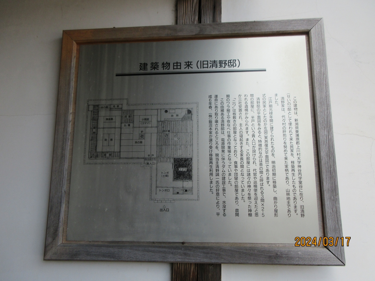 新潟県東蒲原郡上川村で代々村の肝いり役を務めてきた旧清野(せいの)邸を移築したものだと云う。移築して以来、もう30年近くになる。