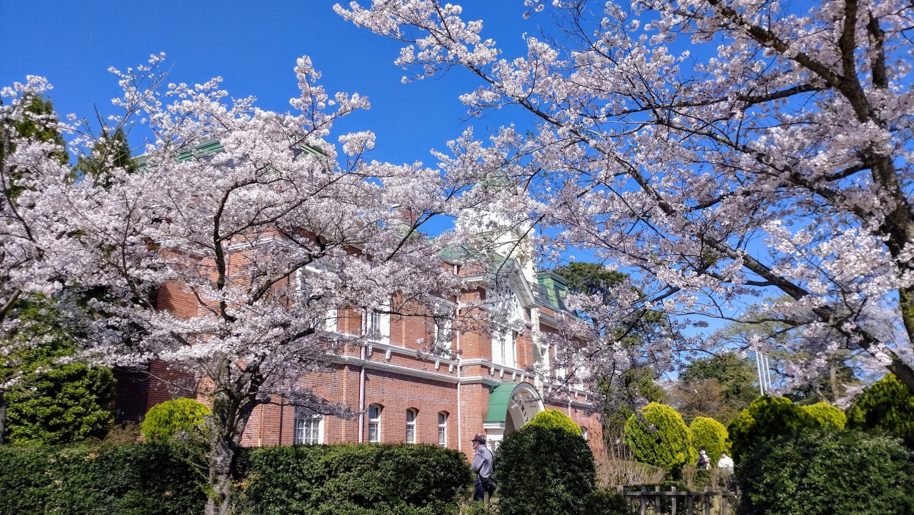 平日のシャトーも桜の季節は賑わっていました。シャトーに桜は似合いますね。3月の早い河津桜は一本ですが、4月は見応えある複数の桜が咲きお花見客で賑わいます。お土産ショップの前にはワゴンも出て居て、ジュースやワイン等も飲むことが出来ました。