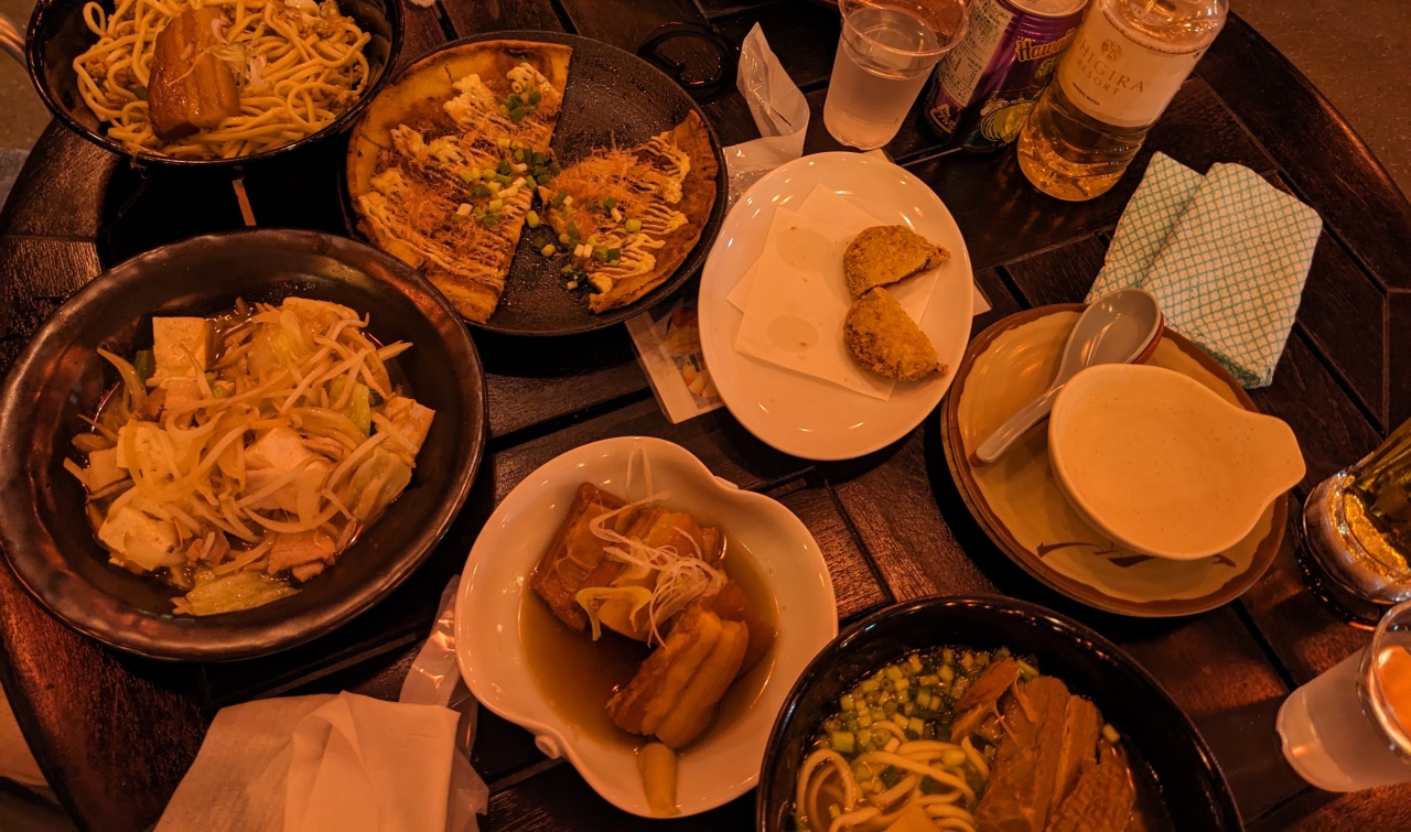沖縄料理と中華料理がありましたが、どちらもメニューは少なめ。量も少なめだけど価格は高め。観光地なので仕方ないですね。先に注文&会計を済ませて、出来上がったら取りに行く、フードコートのような感じです。窓口が1つしかなかったので行列でした。