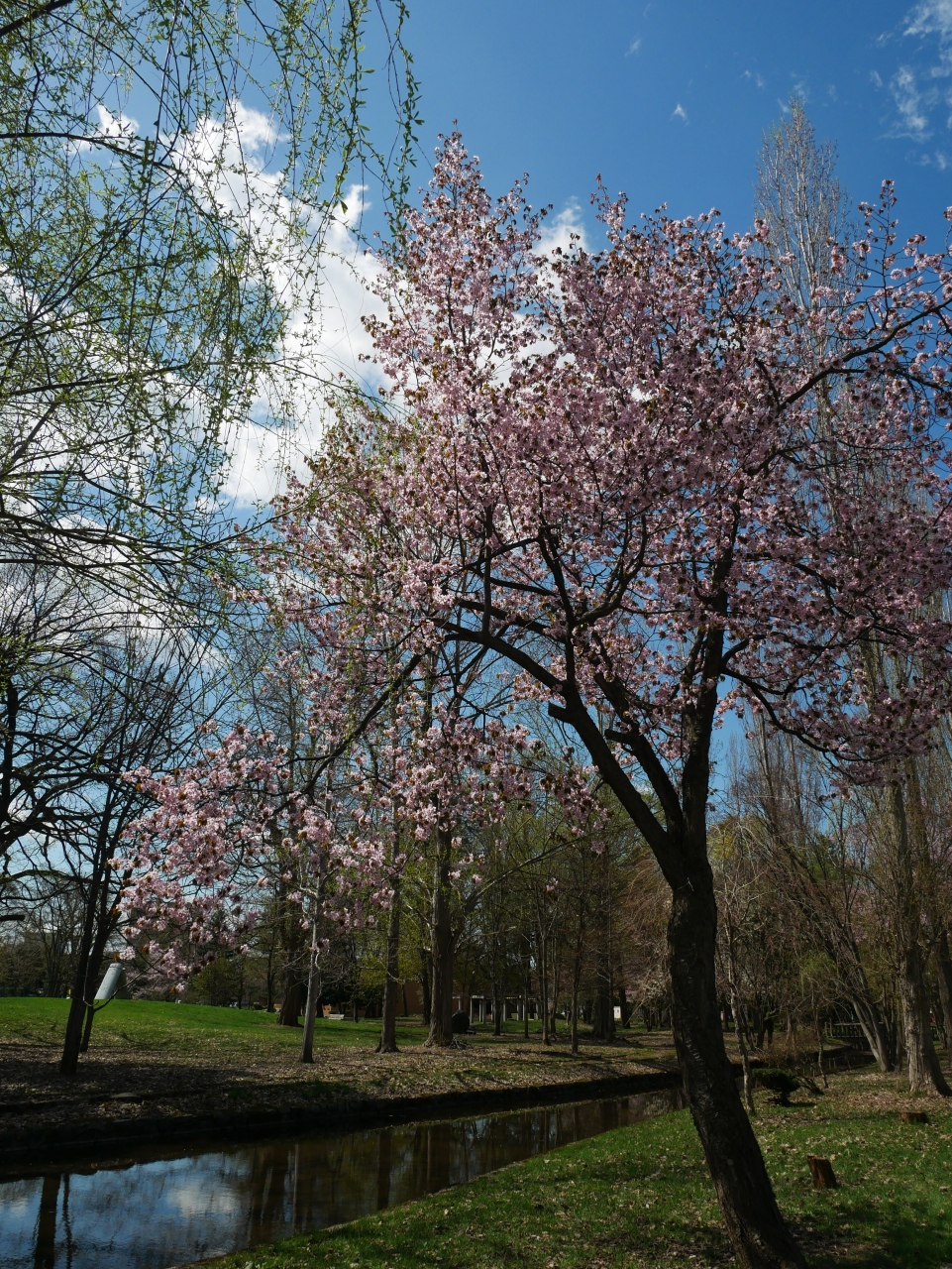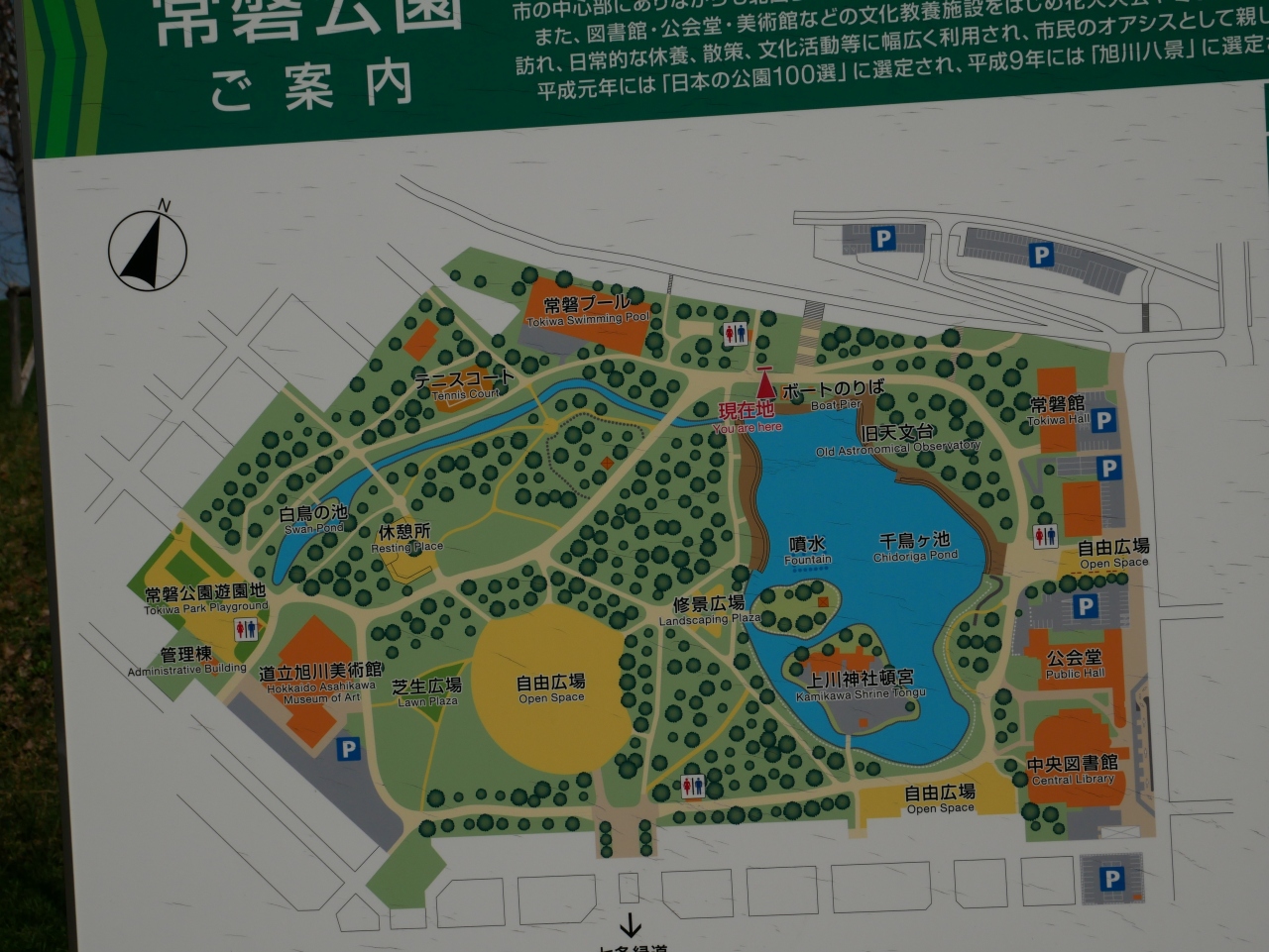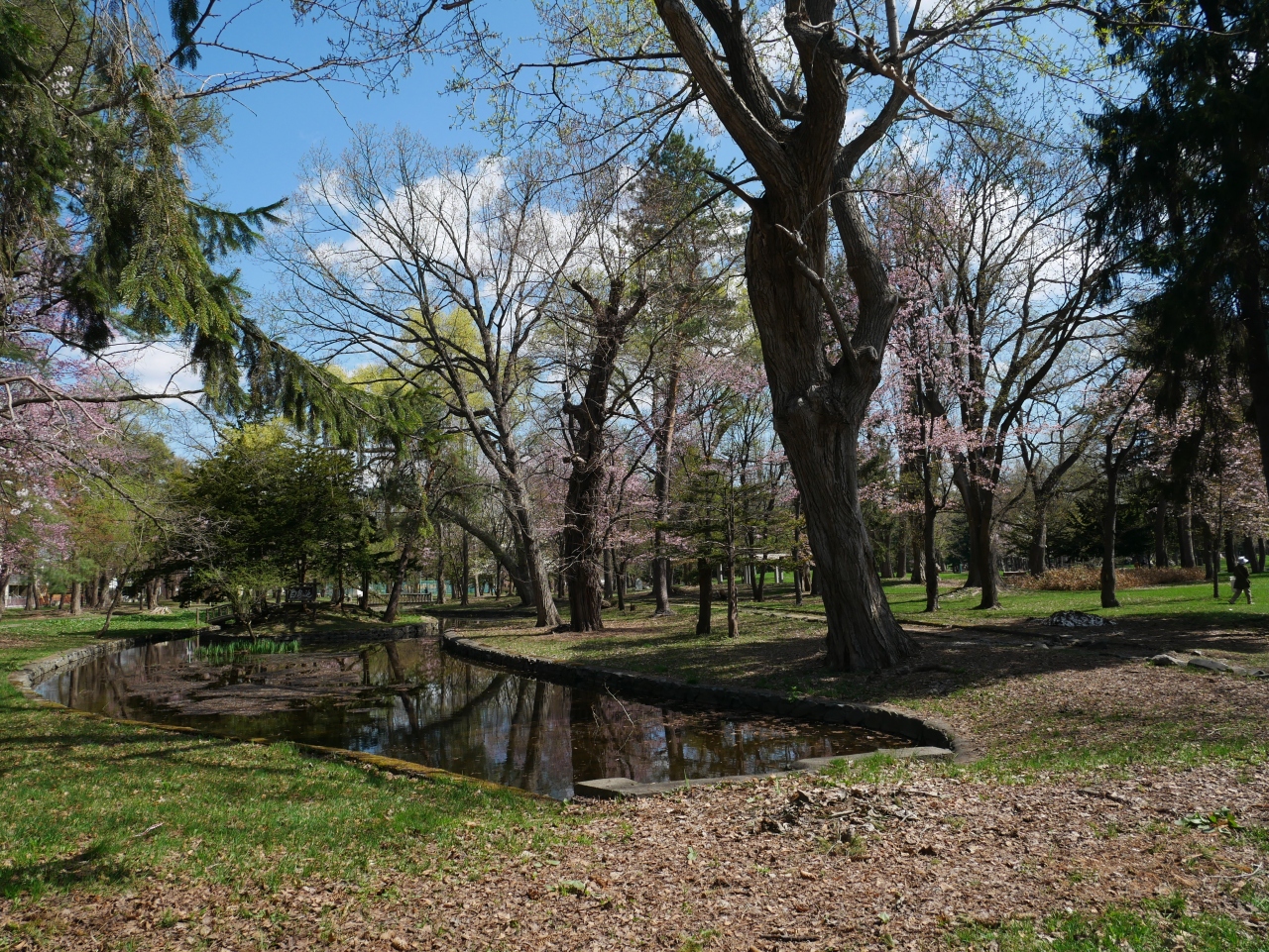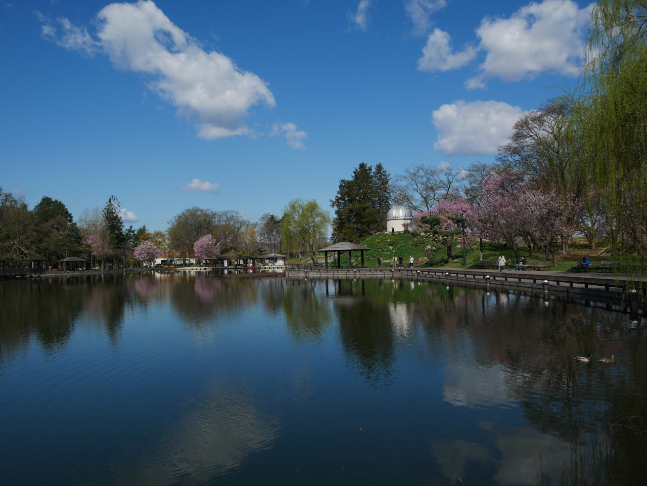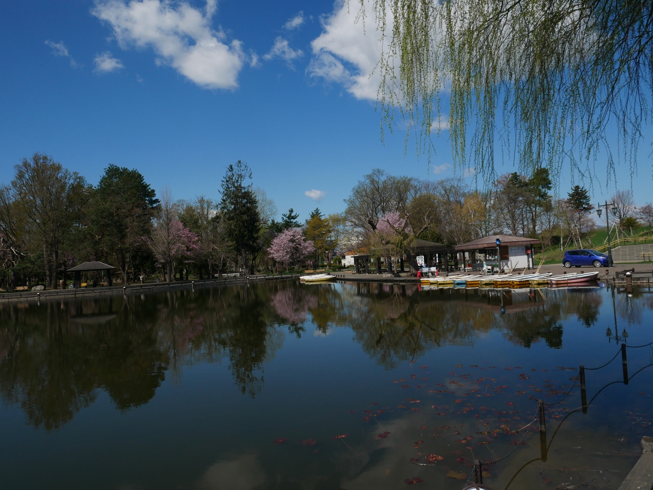 旭川の街中にある広くてきれいな公園です(日本の都市公園100選にも選ばれているそうです。)。2つの池を中心にした公園で、池を一周する感じで散策できます。途中、ちょうど満開だった桜がとてもきれいでした。