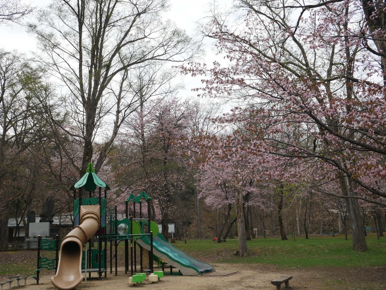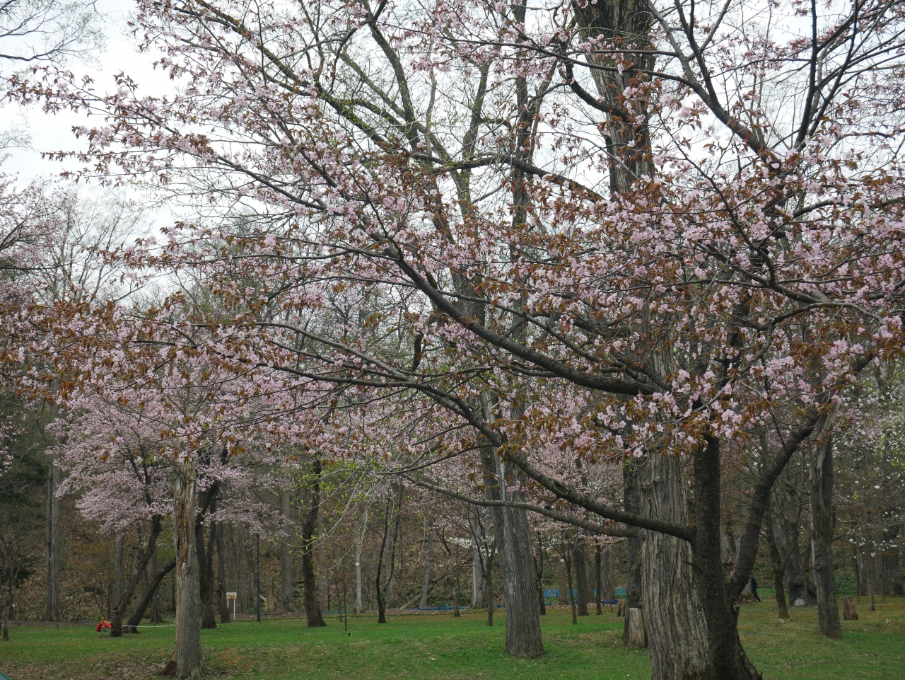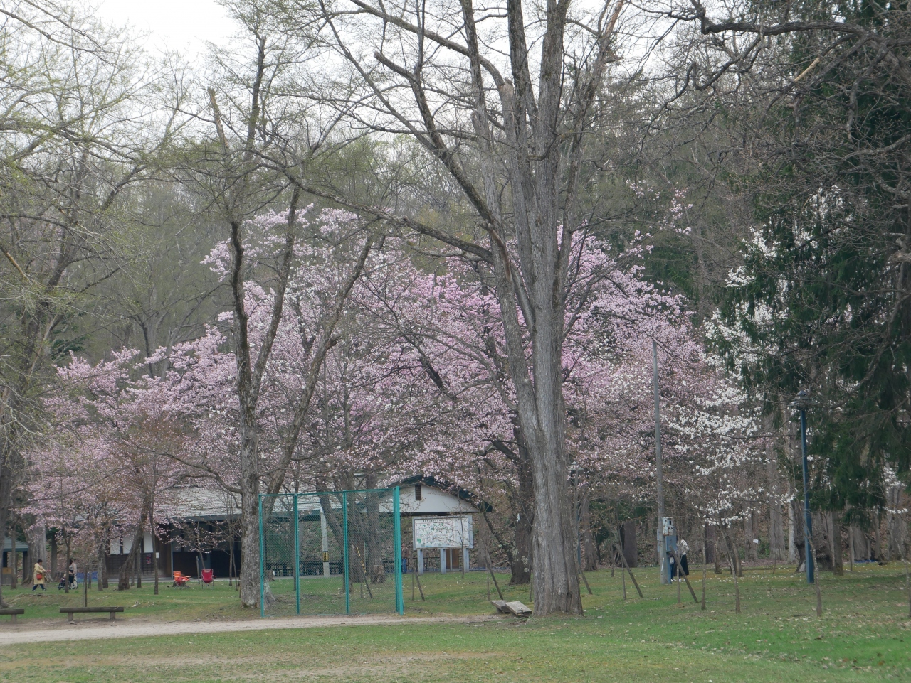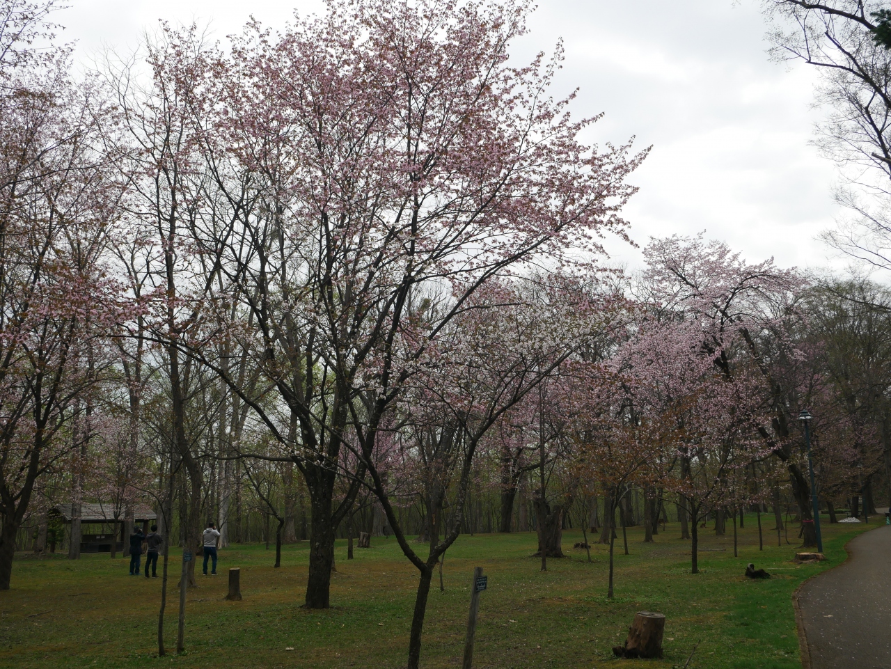 行ったときは桜がたくさん咲いていてきれいでした。~広い公園のあちこちに桜があるのでお散歩しながら桜を見るのもいいですし、桜の時期だけはバーベキューも可と書いてあったので、ビールにジンギスカンの北海道式は花見もいい感じでした。