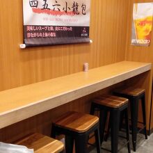 使い捨て容器提供で、店内席・立ち飲み卓があり、イートインできます。焼小籠包、手羽餃子など飲茶は焼きたて蒸したての提供で熱々。生ビールもアクリルカップ提供とは言えキンキンに冷えてます。気軽にちょい食べ・飲みするのに最適なお店。