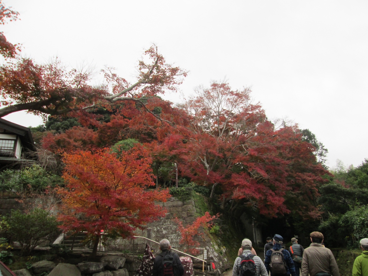 春にもこのコースを歩きましたが、秋の紅葉を見るための再登山です。長寿寺、建長寺を見て、建長寺の半僧房から登り始めました。不手際により、先行組と後行組が離れてしまい、携帯電話で連絡が付き、鎌倉宮で待ち合わせる。先行組は獅子ヶ谷の紅葉は諦め、今泉台六丁目分岐で、天園には行かず、覚園寺経由で鎌倉宮に降りました。残念ながら獅子舞谷の紅葉は見られませんでしたが、長寿寺、建長寺、覚園寺、鎌倉宮において最盛期の紅葉を見ることが出来、満足できるハイキングでした