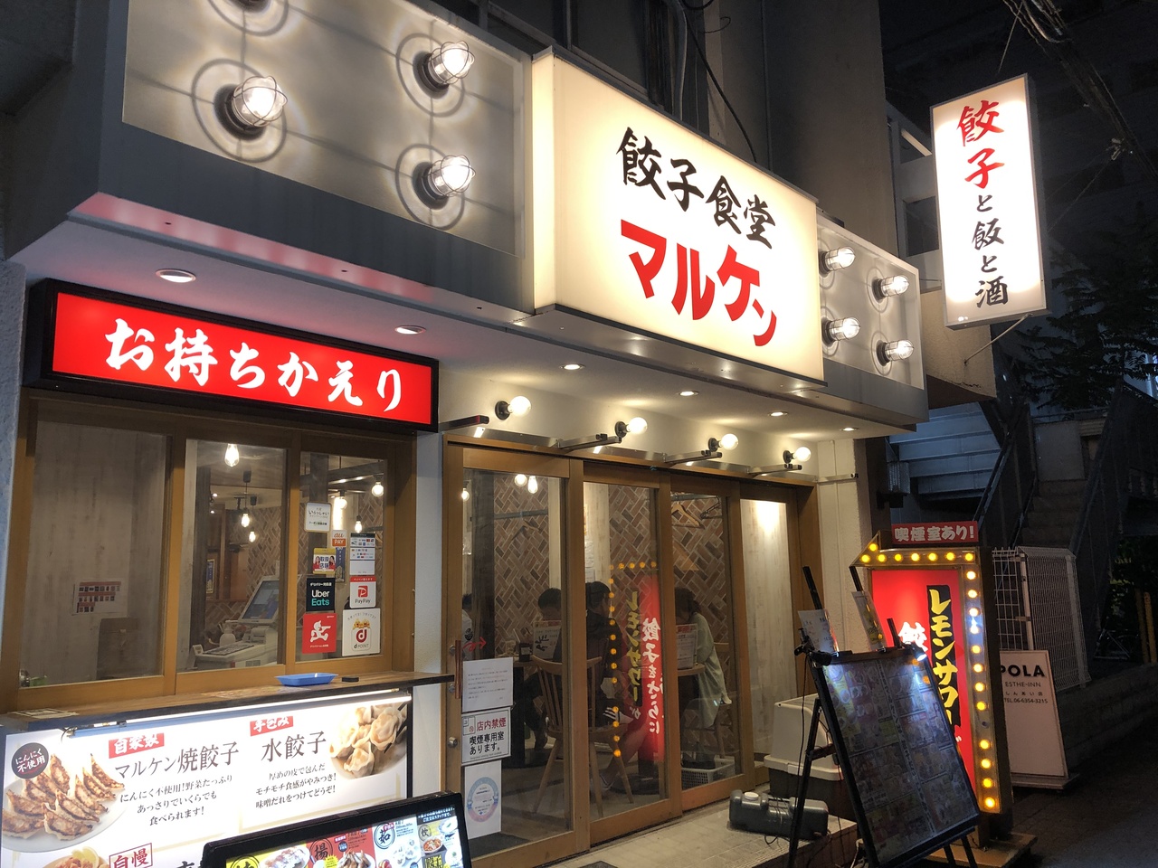 大阪メトロ天神橋筋六丁目駅から徒歩3分ほど。店内はとても広いです。餃子の種類が多く、他のメニューもたくさんあります。