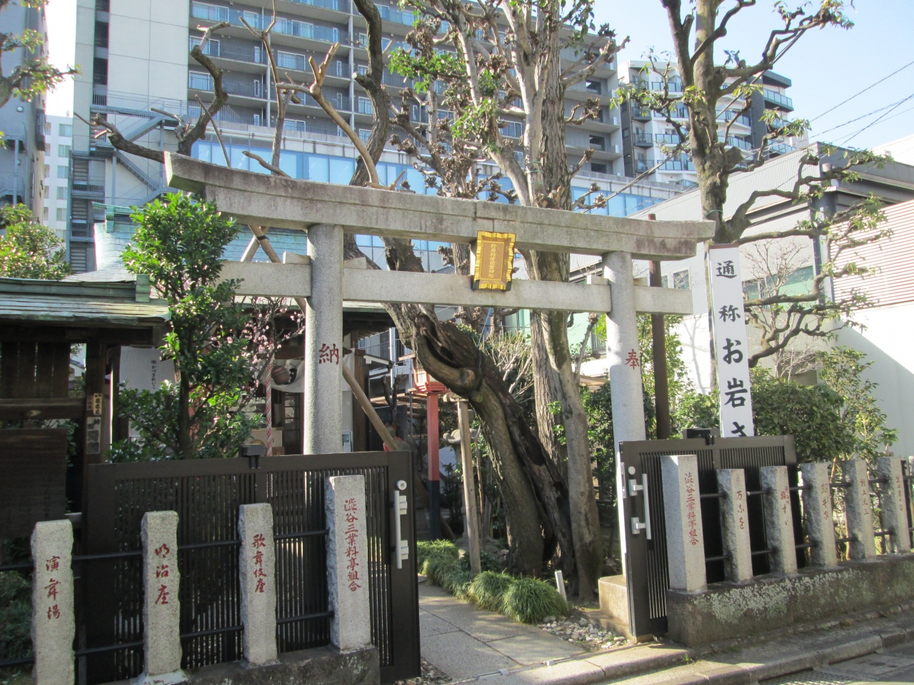 江戸時代四ツ谷のお先組同心田宮家にあったお岩稲荷の祠が始まりとされています。明治時代に、火事で焼失、1952年旧地のここに再建される。鳥居を潜ると社殿と境内社があります。鳥居、社殿、手水、境内社があるこじんまりとした神社で特徴はありませんでした。子供時代、お岩さんと言うと、四谷怪談の映画に出てくる恐ろしいお化けの代表でしたが、実際には夫婦円満で、二人で家勢を盛り上げたということからお岩稲荷は、人々から信仰を集めたことを、今日ここに来て初めて知りました