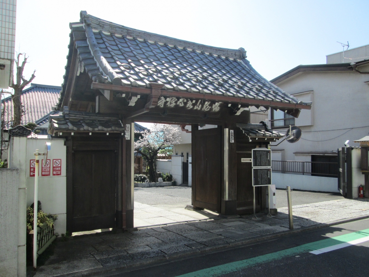 曹洞宗の一寺、創建は1604年、開山は明舜洞和尚、本尊は釈迦牟尼仏です。文化財は区指定有形文化財の山門と本堂を有しています。藥井門の山門を通ると正面に本堂、六地蔵があります。山門は小ぶりですが、江戸時代建立の区指定有形文化財です。歴史を感じさせてくれます。本堂も木造で、山門と本堂両方とも木造製のお寺は、都心では少なくなっているので、長くこれらを維持して欲しいものです