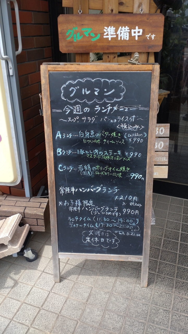 ひたち野うしくにある栄養・調理専門学校のお隣にあります。ランチがコスパ良いと人気のお店で、予約は取らないので11時半の開店に合わせ行きました。開店と同時に入ったのは3組でしたが次々お客が来て満席に。メイン料理にスープ、サラダ、ご飯(パン)のセットで¥990(税込み)~。これは確かにお得と納得でした。ドリンクやデザートをプラスすると¥600位高くなります。色々なランチを食べてみたいと思いました。常陸牛のハンバーグはあっさり味のソースが掛かり、パンにすればソースも綺麗に食べられたと思いました。