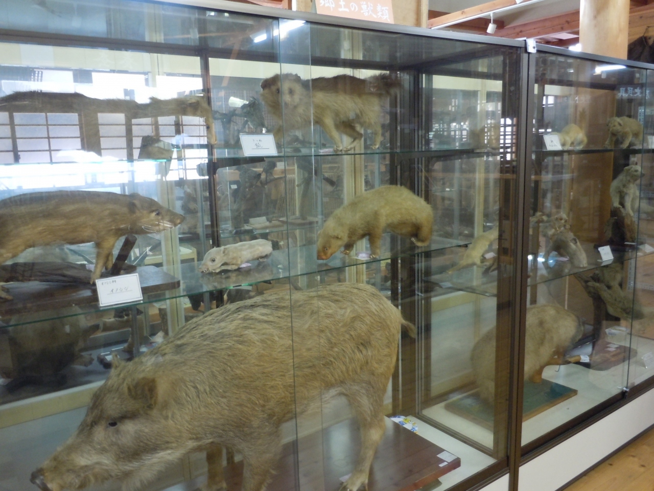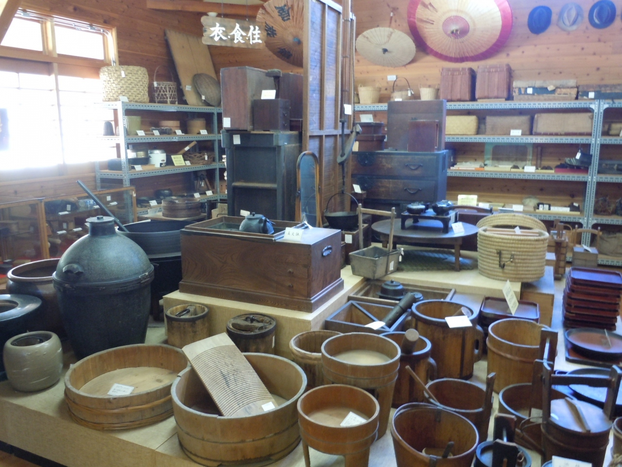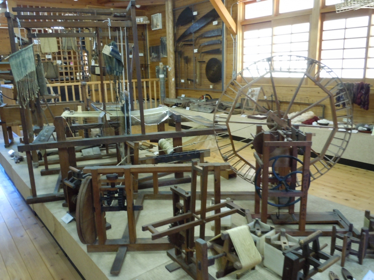 広い駐車場も入館料も無料です。稲武の自然、養蚕、林業、歴史、民具、衣食住、農業など多岐に渡る郷土資料が所狭しと展示されています。展示説明がわかりやすく、よく工夫された展示に感心するばかり。実際に使われた古い農機具やレトロな家電製品を見ると、