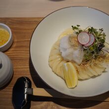 一方で、讃岐うどんらしいコシと舌触りのよさはなかなかいいのですが、この固さはどうでしょう。本場の讃岐うどんでもここまで固いところはあまりないと思いますが、つまり、ちょいちょい食べる前提だと少し固さが過ぎるような。もったいないなと思います。