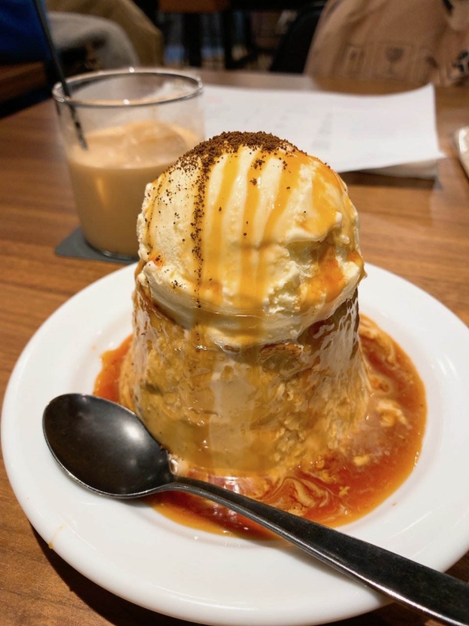 こちらのカフェは、1 food 1 drinkオーダー制でした。 プリンでも1 foodとしてカウントされたので、美味しく頂きました。 もう見た目から、こんなん絶対に美味しい!!って食べなくても分かる!プディングでした。