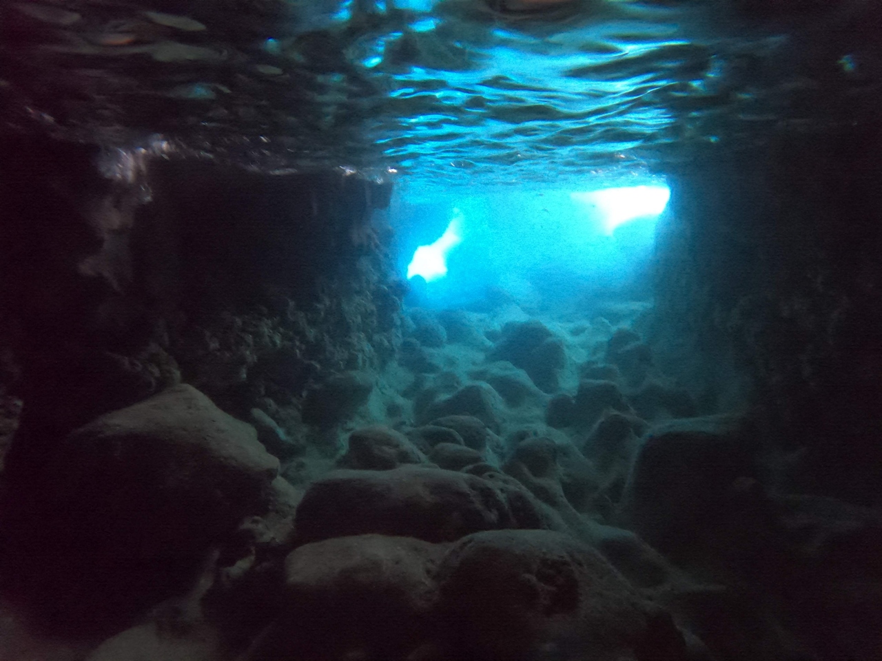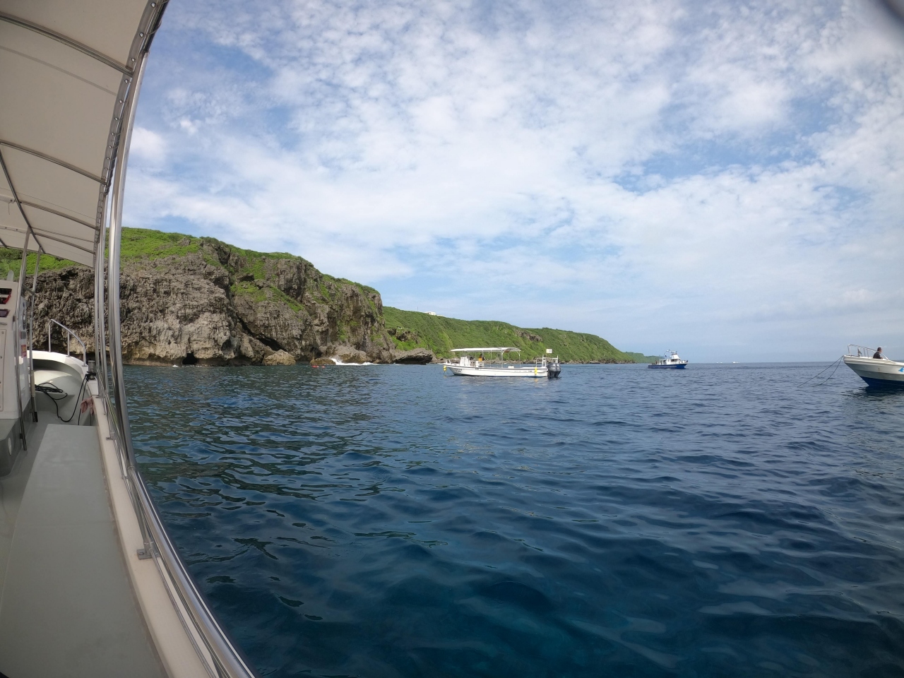“今日は海況が良さそうなので、八重干瀬に向かう前に、佐良浜港近くの「青の洞窟」に行きませんか?” とヤスさんから提案があり、@1,500円の追加料金で全員参加することになりました。