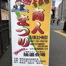 2024年6月8・9日に折戸通り商栄会と庚申塚商栄会、巣鴨駅前商店街、巣鴨大鳥神社商店街、巣鴨地蔵通り商店街で行われるすがも商人まつりが開催されました。どの商店街や商栄会も度々訪れる所で、今回8日を逃してしまいました。9日10時過ぎに巣鴨地蔵通り商店街入口から珍しい三人のちんどん屋さんが楽器演奏と呼び込みをしていました。都電方面へ商店街をゆっくり歩き、海外の観光客や小さな子供連れの人たちが立ち止まってパフォーマンスを見ていました。8カ所のチェックポイントでスタンプを集めると眞性寺中央会場で抽選ができます。楽しいウォークラリーでした。