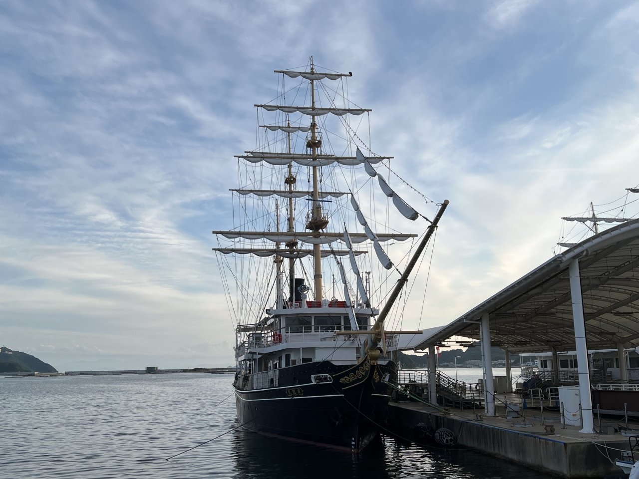 潮風を浴びて観光船を眺めたり、造船施設を見たりするにはいい場所ですね。